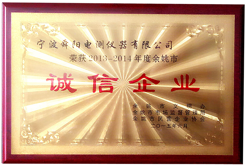 2015年6月,被余姚市文明辦、余姚市市場監(jiān)督管理局、余姚市民營企業(yè)協(xié)會聯(lián)合評定為2013-2014年度余姚市“誠信企業(yè)”