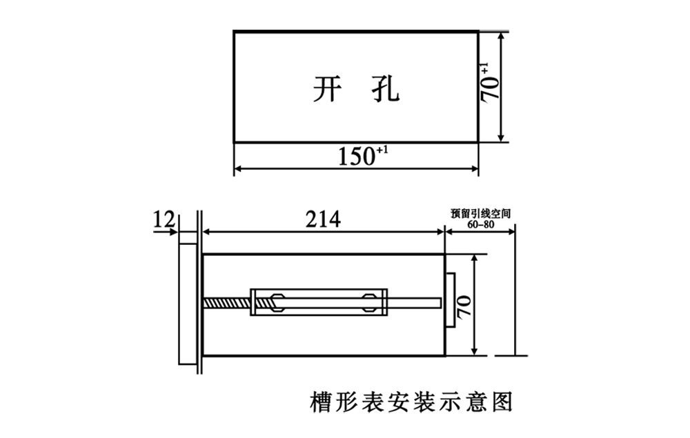 DT1/C系列電壓監(jiān)測(cè)儀采用鐵質(zhì)外殼噴塑涂復(fù),其盤面和嵌入部分的截面的大小與許多儀表一致,便于安裝其外形尺寸為160×226×80mm3,安裝時(shí)的開(kāi)孔尺寸和安裝方法見(jiàn)下圖:
